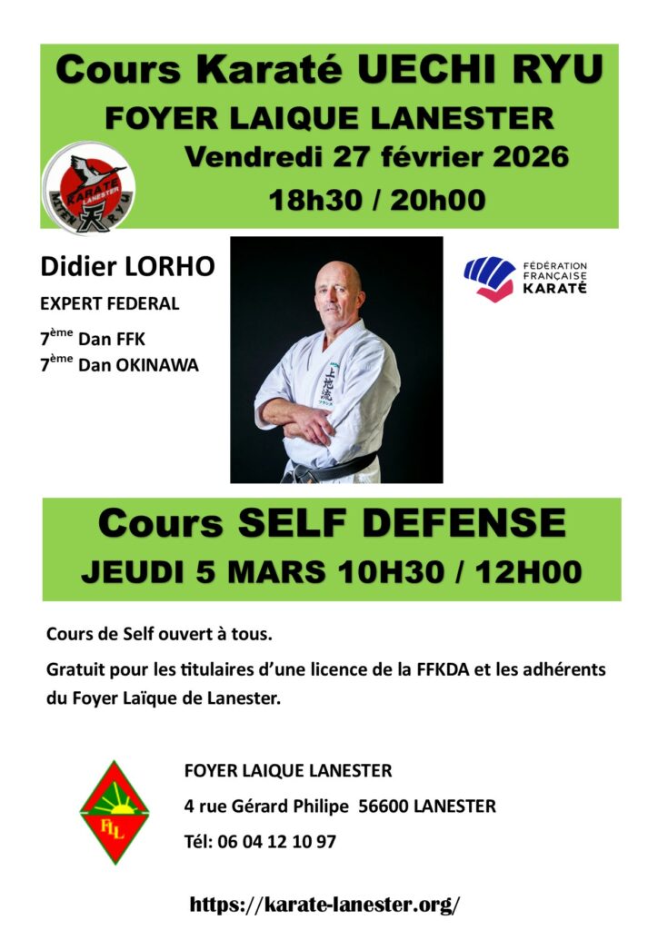 Didier LORHO sera présent au FLL le vendredi 27 février 2026 pour animer un cours de karaté UECHI RYU
